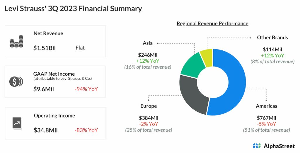 Levi Strauss & Co. (NYSE: LEVI) has announced financial results for the third quarter of 2024, reporting an increase in net income. Meanwhile, revenues remained broadly unchanged year-over-year.
