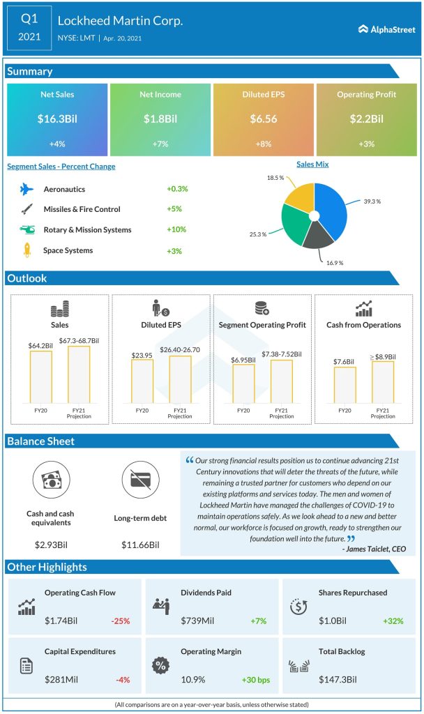 Lockheed Martin Corp. (NYSE: LMT) today reported its second-quarter financial results for the period ended June 27, 2021.