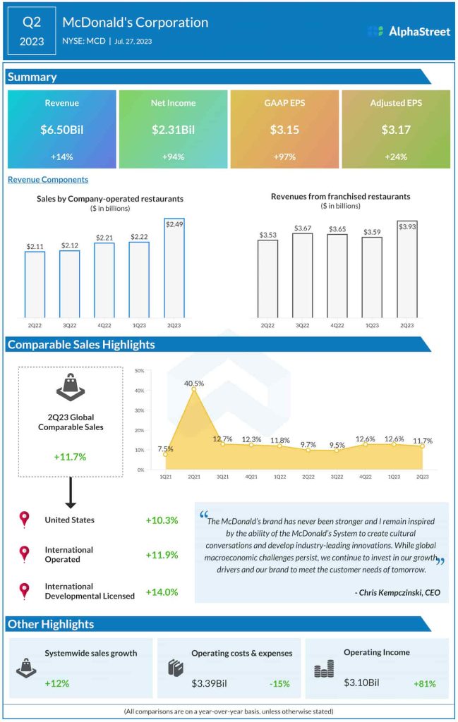 “Strong execution of our Accelerating the Arches strategy has driven over 30% comparable sales growth since 2019 as our talented crew members, and the industry’s best franchisees and suppliers have demonstrated proven agility with a relentless focus on the customer,” said McDonald’s chief executive officer Chris Kempczinski.