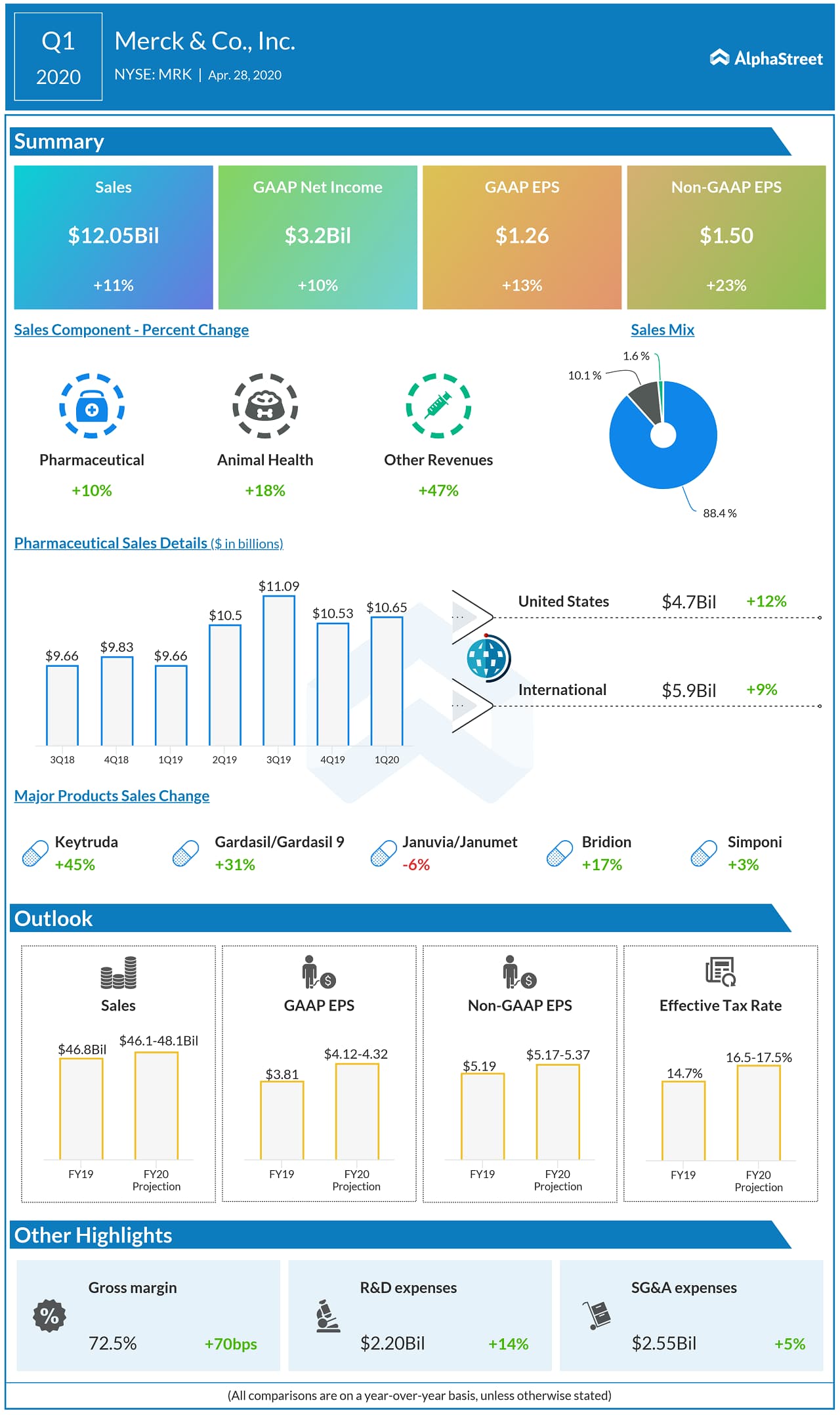 On GAAP basis, first quarter EPS was $1.26 vs. $1.12 in the first quarter of 2019. Non-GAAP EPS was $1.50, compared to $1.22 in the first quarter of 2019.