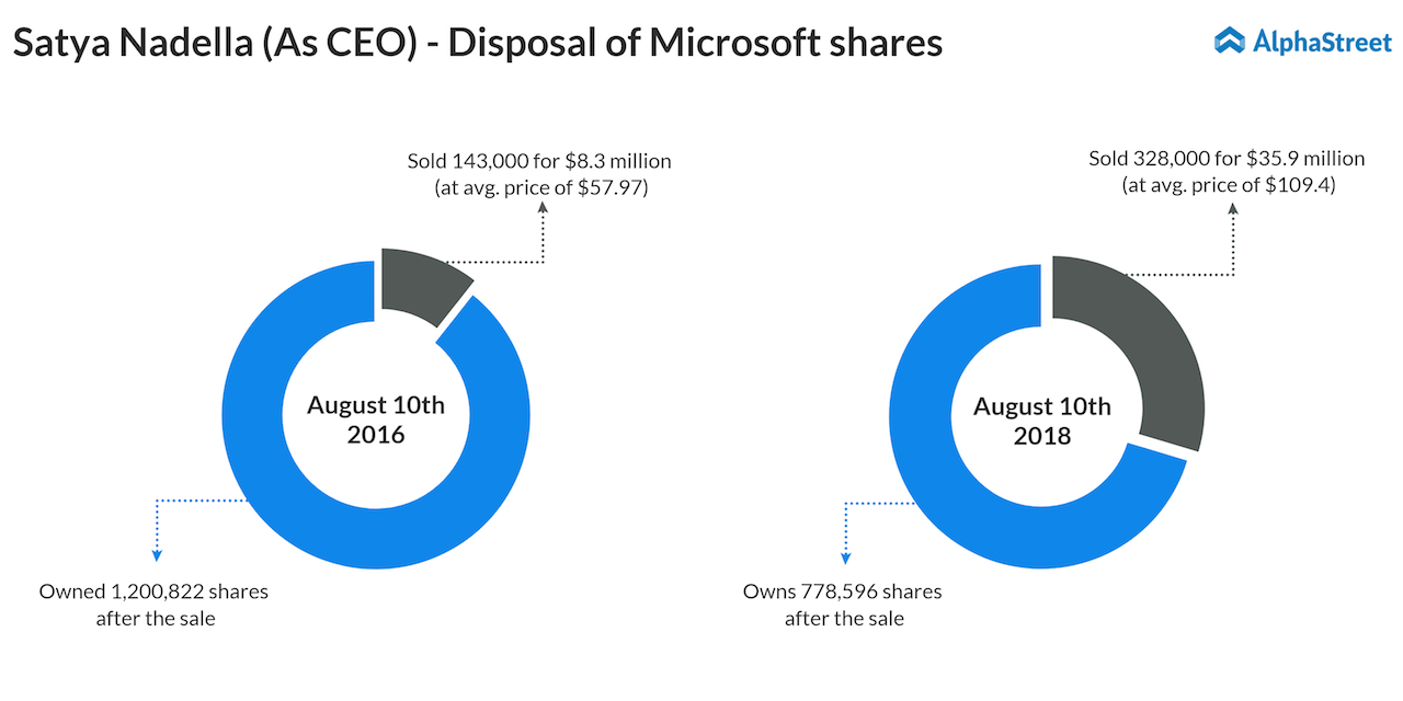 This is the second time Nadella is selling the Microsoft stock after he succeeded Steve Ballmer as the tech behemoth’s CEO four years ago. Exactly, two years back on the same date (August 10, 2016), he had unloaded 143,000 shares at an average price of $57.97 for $8.29 million.