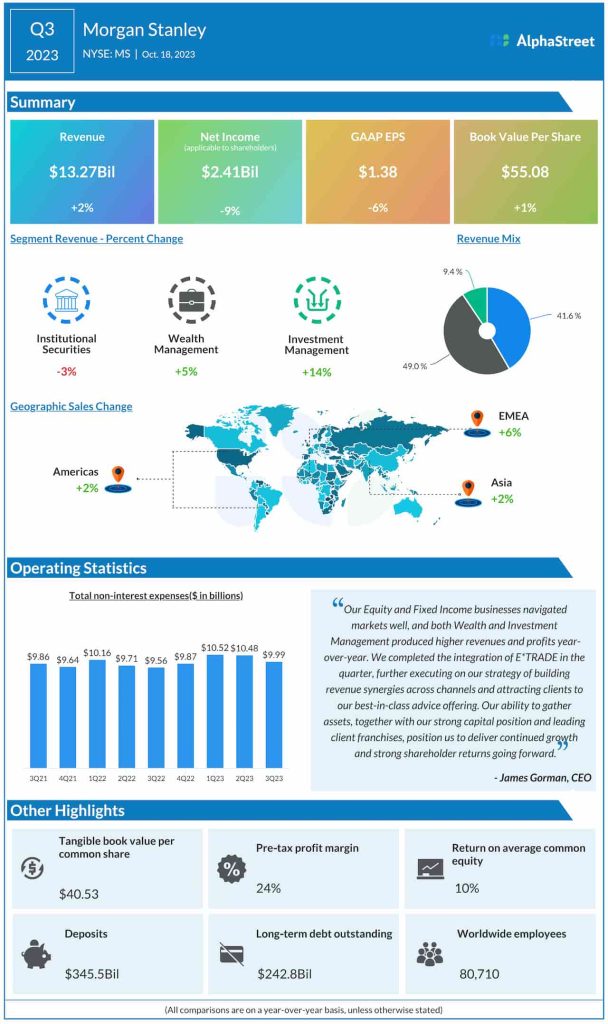Morgan Stanley (NYSE: MS) on Wednesday reported higher revenues and net profit for the third quarter of 2024. The latest numbers also exceeded analysts’ estimates.
