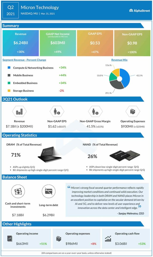 “We’re leading the industry in technology across DRAM and NAND, and our product portfolio momentum is accelerating. With outstanding first-half results, Micron is on track to deliver record revenue and robust profitability in fiscal 2022,” said Micron’s CEO Sanjay Mehrotra.