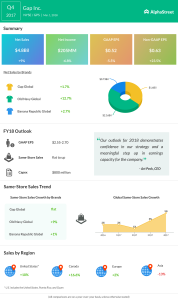 Gap Inc. reported an 8% increase in total sales for its fourth quarter of 2017 while its same-store sales beat market expectations. The solid results sent the stock soaring after the earnings report.