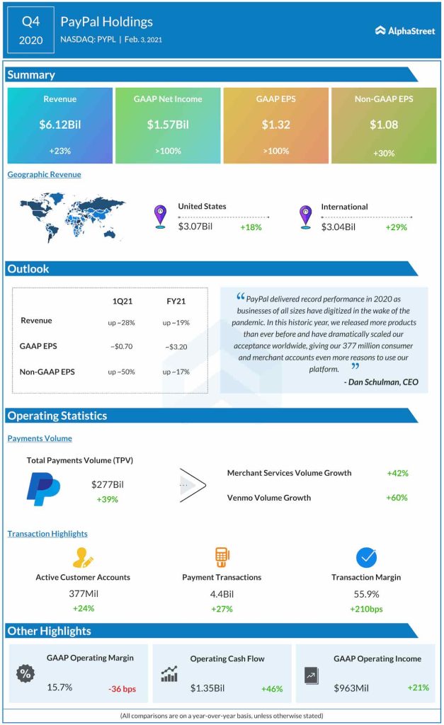 PayPal Holdings Inc. (NASDAQ: PYPL) reported stronger-than-expected earnings and revenues for the first quarter of 2021. Shares of the payment service provider gained during Wednesday’s extended trading session soon after the announcement.