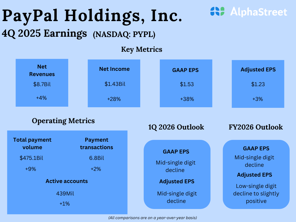 PayPal Holdings, Inc. (NASDAQ: PYPL) reported its fourth quarter 2025 earnings results today.