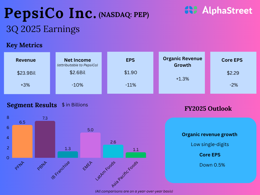 PepsiCo, Inc. (NASDAQ: PEP) reported its third quarter 2025 earnings results today.