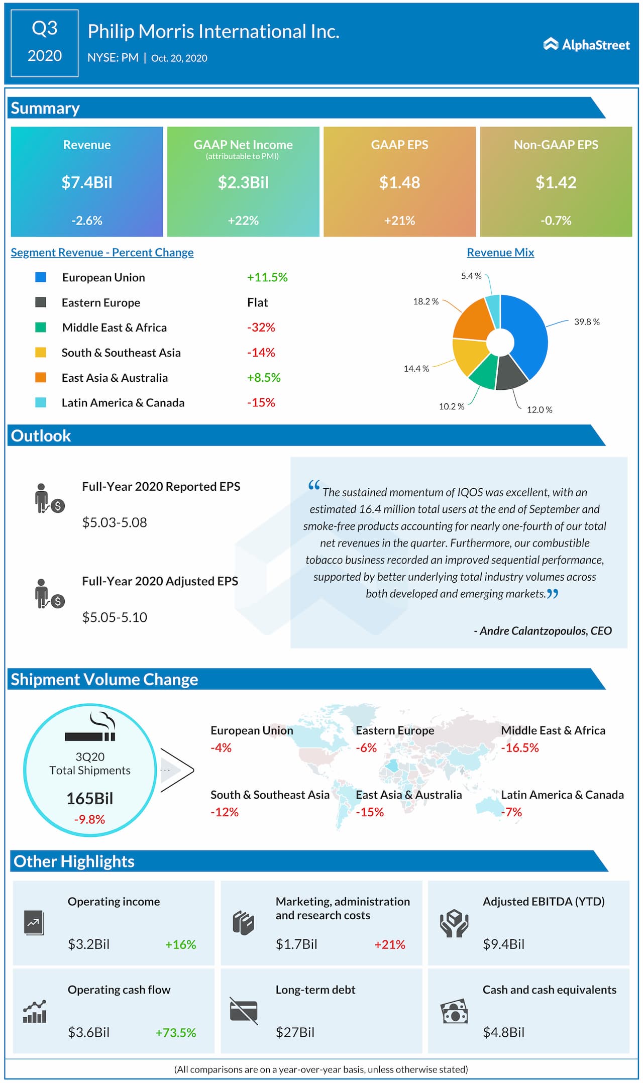 Philip Morris International Inc. (NYSE: PM) reported third quarter 2020 earnings results today.
