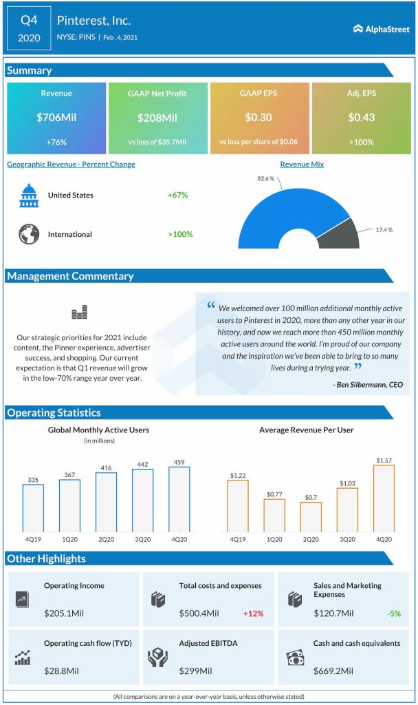 Management/analysts’ comments on Pinterest’s fourth-quarter report