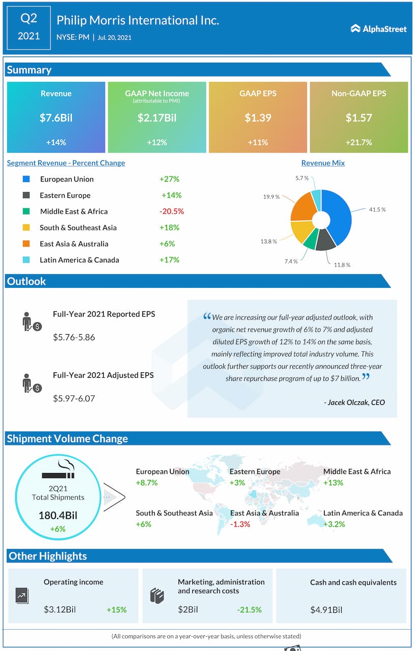 Philip Morris International Inc. (NYSE: PM) reported second quarter 2021 earnings results today.