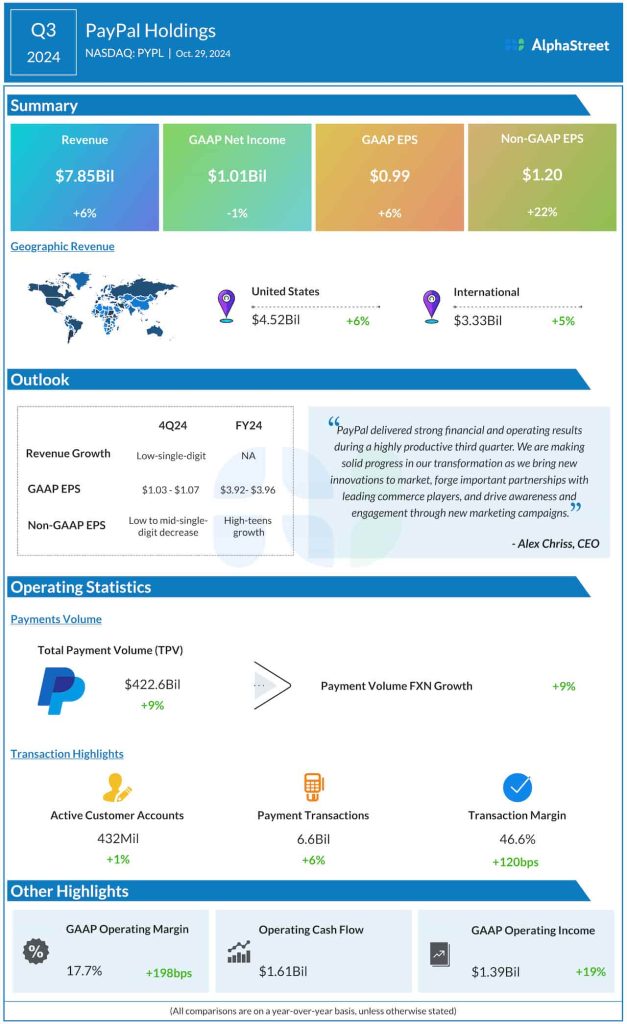 PayPal Holdings Inc. (NASDAQ: PYPL) on Tuesday reported a modest increase in revenue for the first quarter of 2025 when the payment service giant’s adjusted earnings rose by double digits.