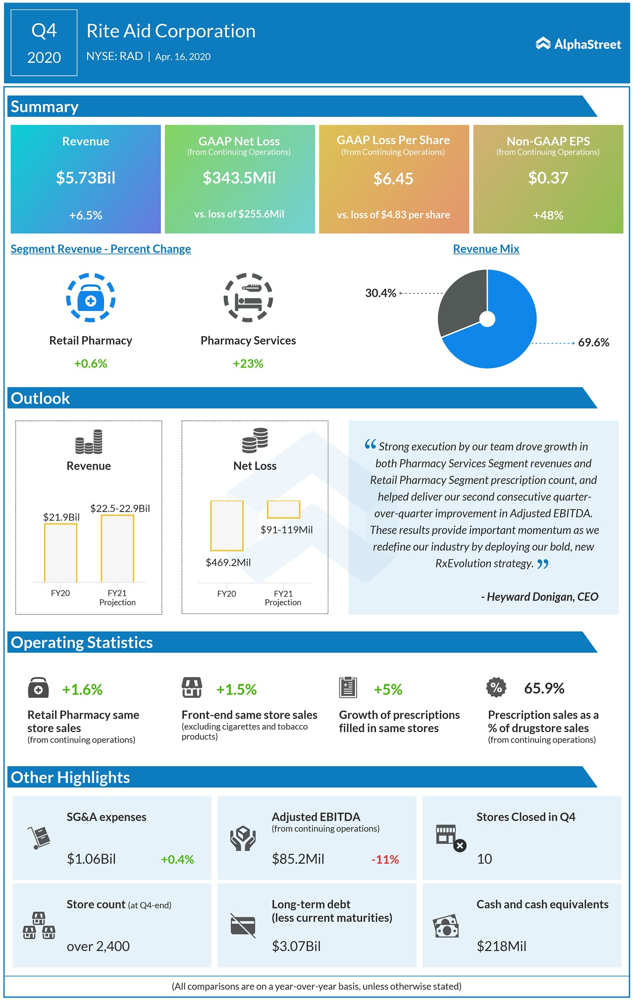 Rite Aid (NYSE: RAD) reported its fourth quarter financial results for the period ended February 29, 2020.