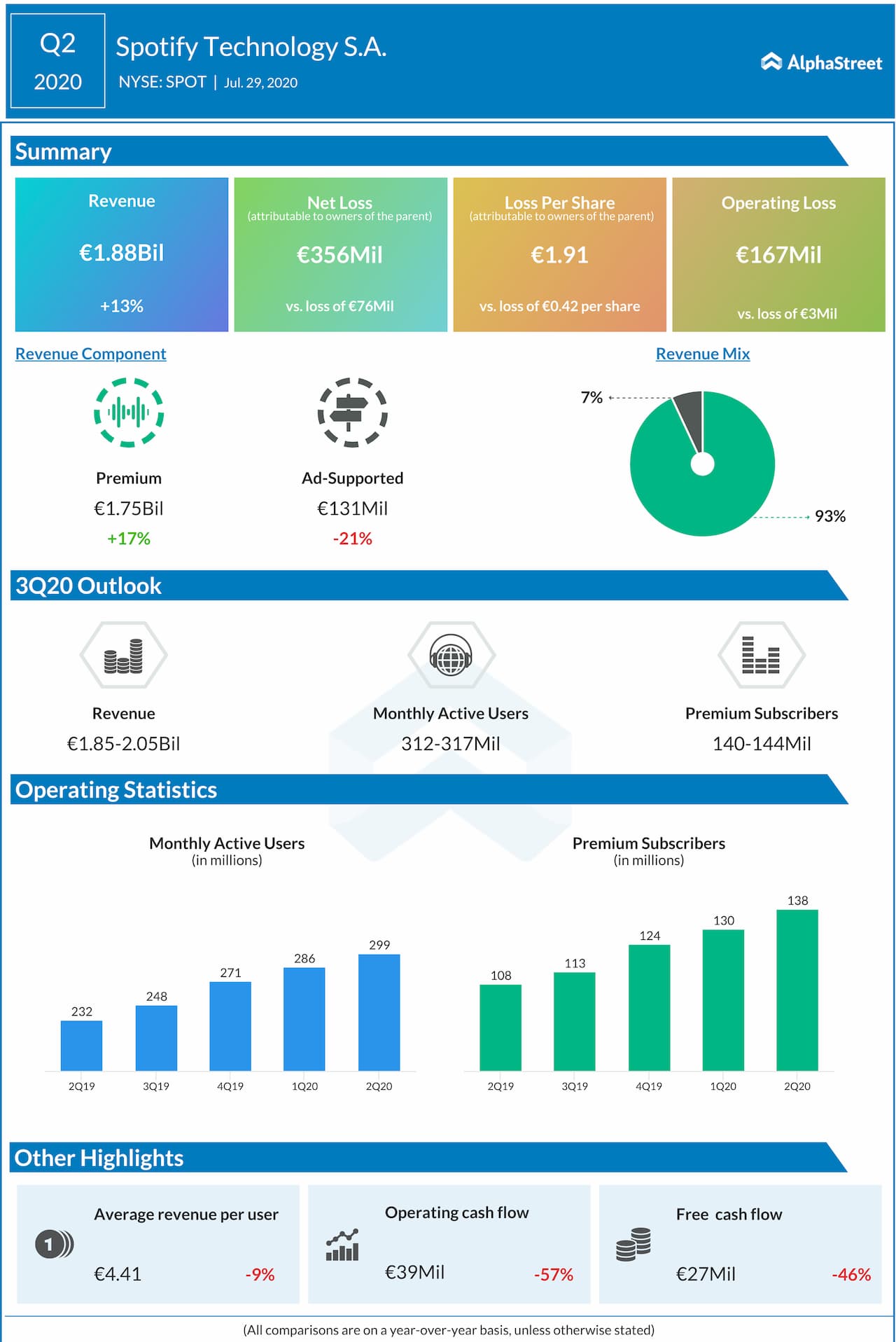 Spotify (NYSE: SPOT) reported second quarter 2020 earnings results today.