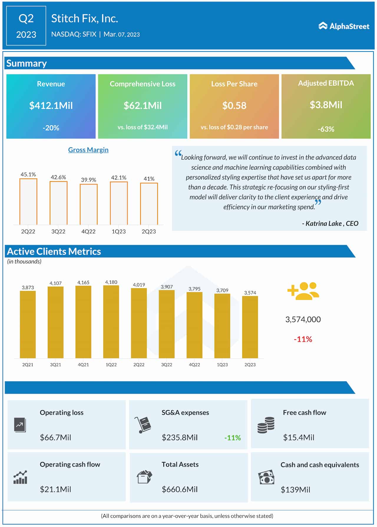 Stitch Fix, Inc. (NASDAQ: SFIX) has reported a 20% drop in net revenue to $412.1 million for the second quarter of 2023, reflecting the tough macroeconomic conditions and the slowdown in consumer spending.