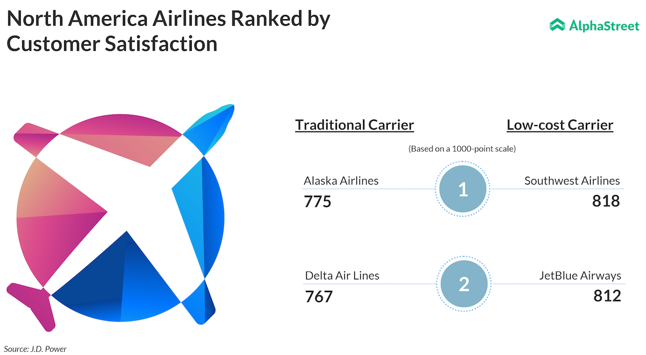 Looking at low-cost carriers, Southwest Airlines (LUV) captured first place with 818 points thanks to its fleet improvement. JetBlue Airways (JBLU) came second with 812 points. The carriers which improved the most from last year were Allegiant and Air Canada, which stood at 725 and 734 points respectively. It appears that the airlines are on the right flight path in terms of improvement and customers are quite happy with where they are going.