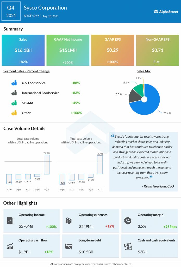 Sysco Corporation (NYSE: SYY) reported fourth-quarter 2021 earnings results today.