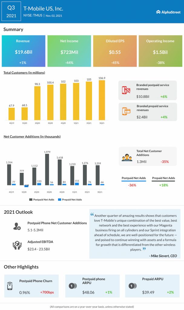 T-Mobile US Inc. (NASDAQ: TMUS) reported third-quarter 2021 earnings results today.