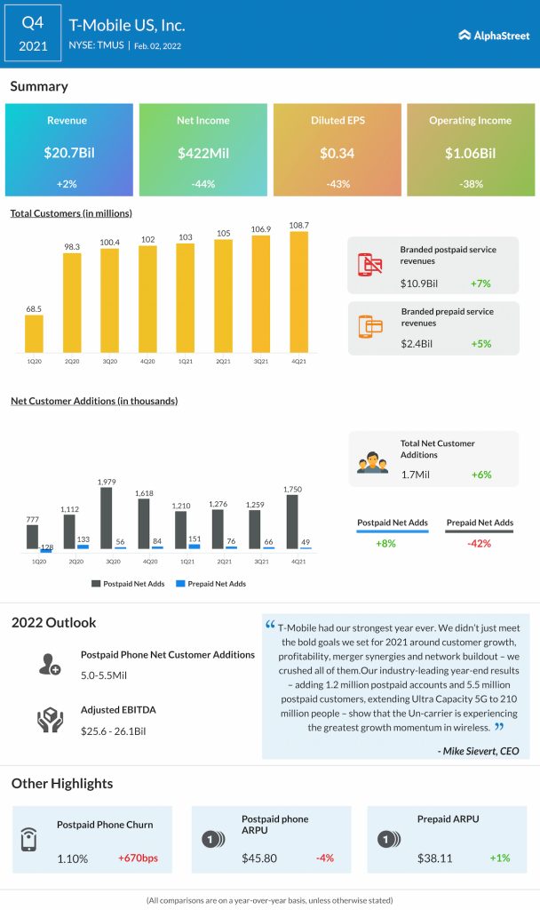 T-Mobile US Inc. (NASDAQ: TMUS) reported fourth-quarter 2021 earnings results today.