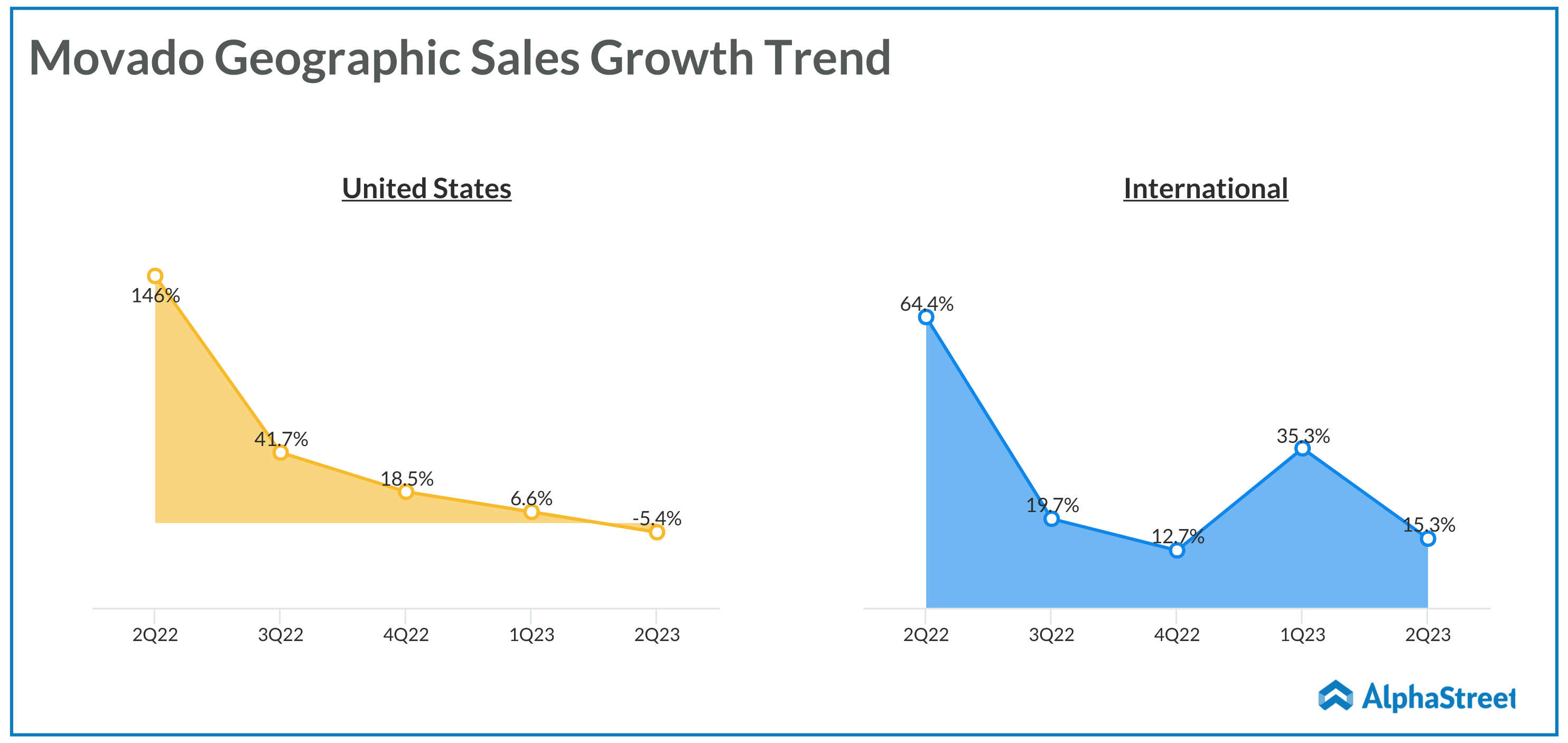 In fiscal 2022, Movado’s net sales increased by 45% annually to $732.4 million. Full-year operating profit, adjusted for special items, nearly tripled to $119.7 million. In the second quarter of 2023, adjusted profit increased to $24.6 million or $1.07 per share from $20.1 million or $0.85 per share in the corresponding period of the prior year. Net sales grew 5% year-over-year to $182.8 million in Q2.