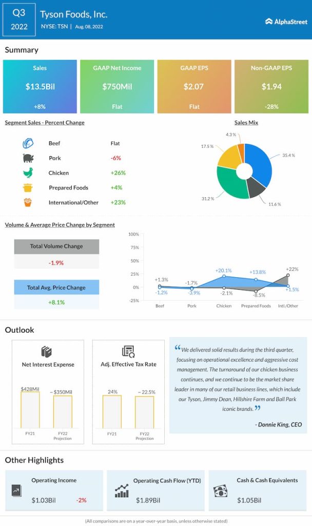 Tyson Foods, Inc. (NYSE: TSN) reported third quarter 2022 earnings results today.