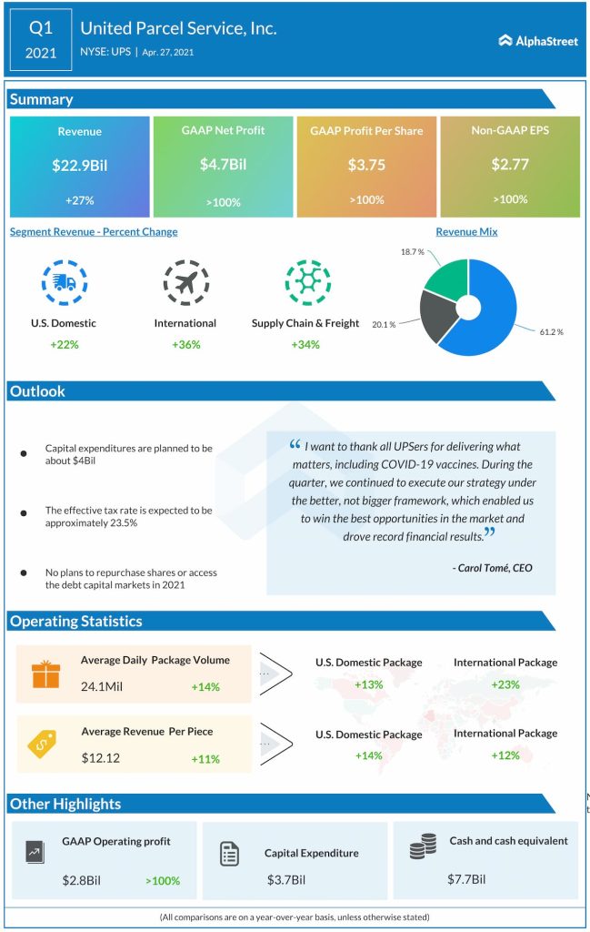 United Parcel Service (NYSE: UPS) reported first-quarter 2021 earnings results today.