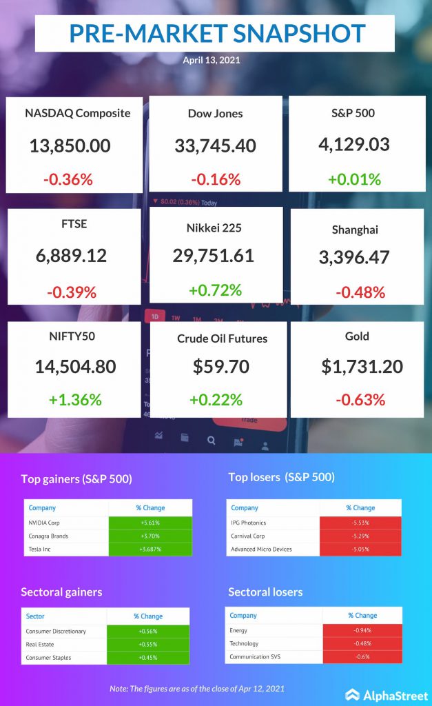 US pre-market news: Dow Jones, NASDAQ, S&P updates for Apr.13, 2021