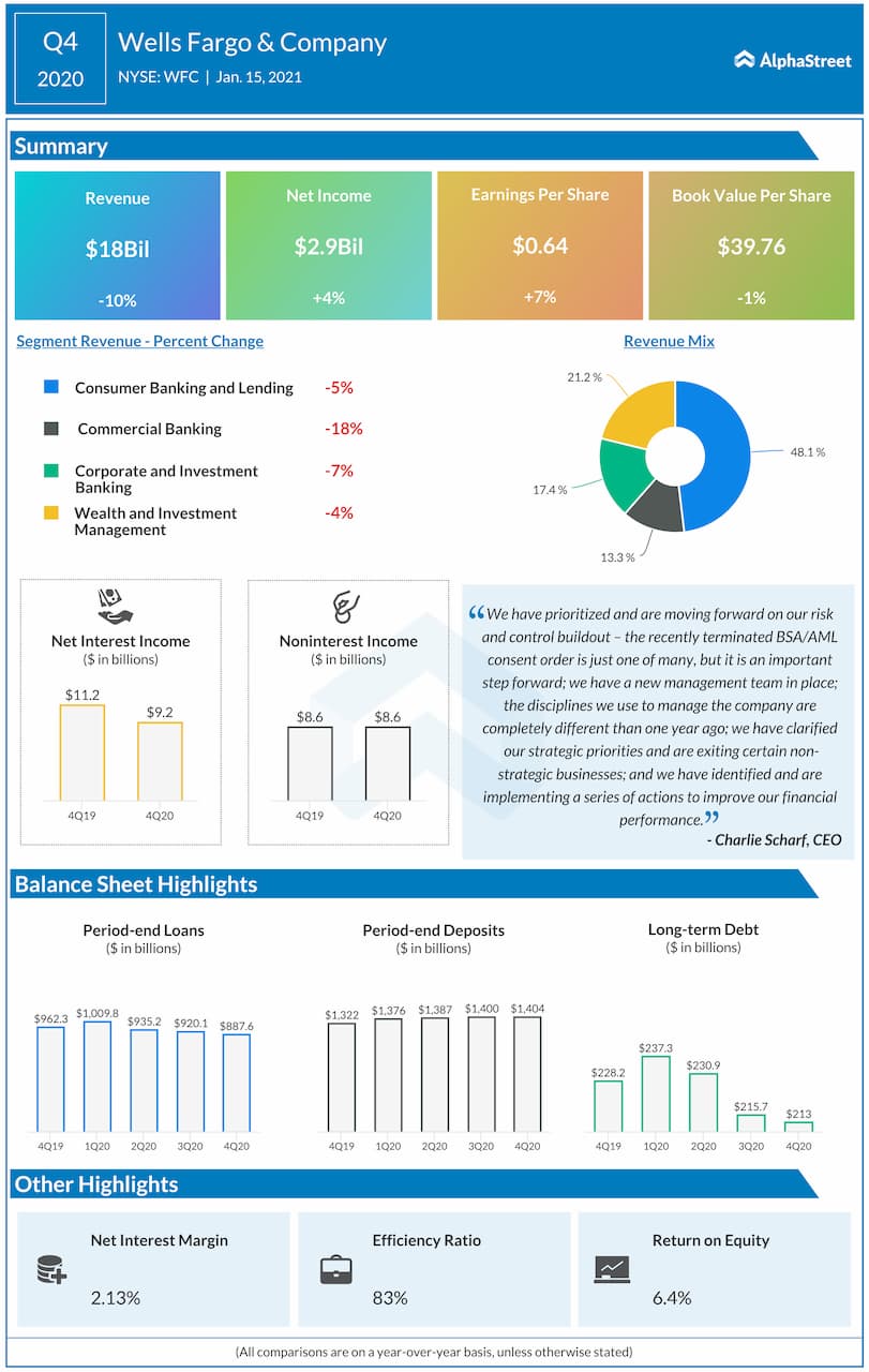 Wells Fargo & Company (NYSE: WFC) reported fourth quarter 2020 earnings results today.