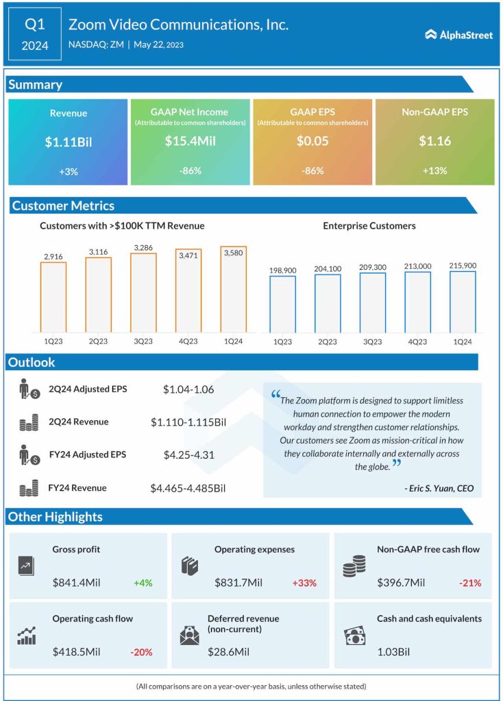 Zoom Video Communications (NASDAQ: ZM) this week reported a double-digit increase in adjusted earnings for the first quarter of 2025. The video conferencing platform also provided guidance for the second quarter and fiscal 2025.